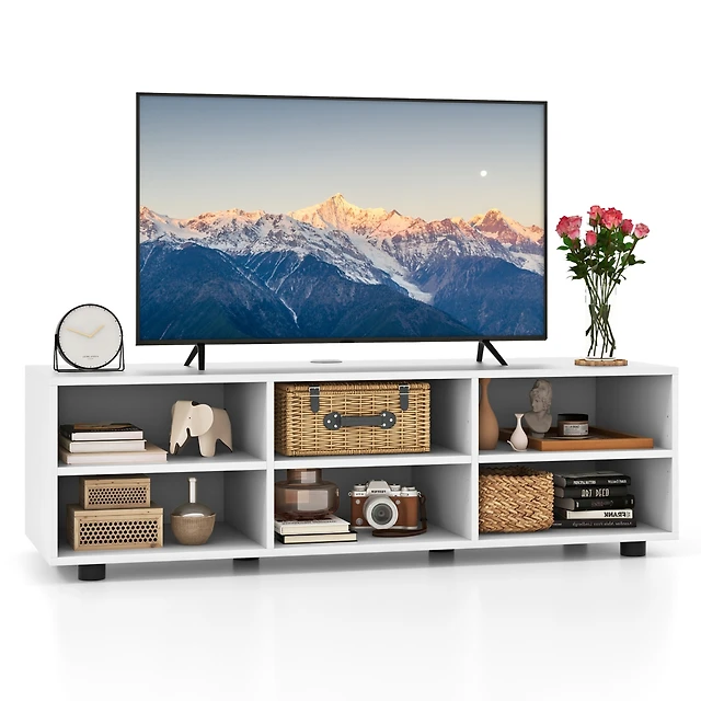 Gymax Tv Cabinet for 50-Inch Tv 42'' Tv Stand w/ 3 Adjustable Shelves Grommet & Cable Hole