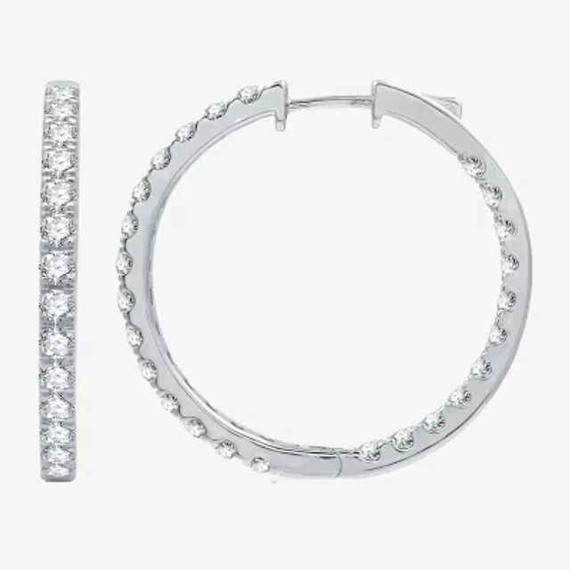(H-I / I1) Womens 1 CT. T.W. Lab Grown White Diamond 10K Gold 25.6mm Hoop Earrings