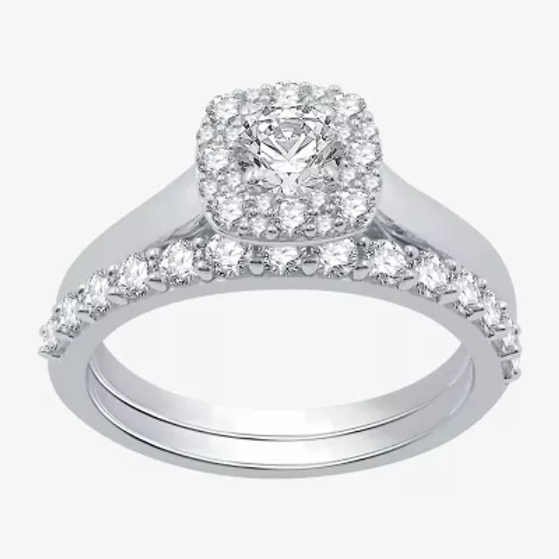 (H-I / I1) I Said Yes Womens 1 CT. T.W. Lab Grown White Diamond Sterling Silver or 14K Gold Over Silver Cushion Halo Bridal Set