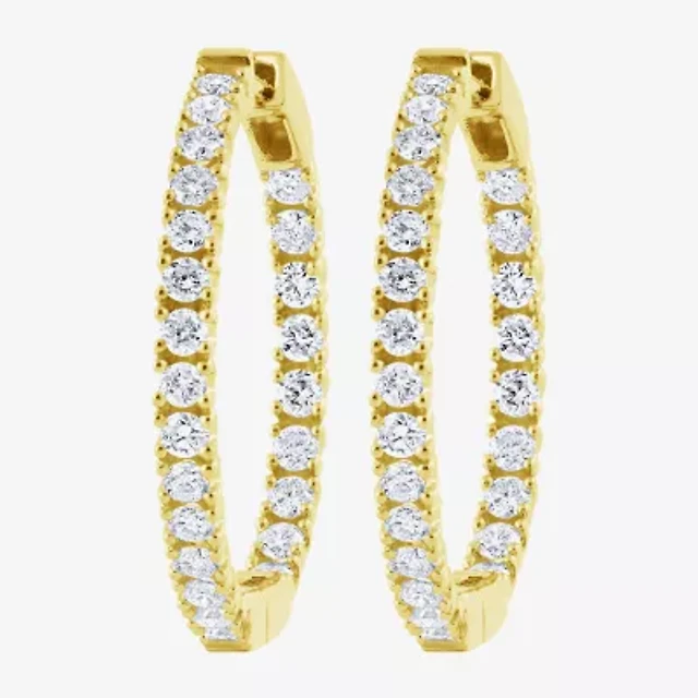 (H-I/Si2) Womens 1 CT. T.W. Lab Grown White Diamond 10K Gold 15.1mm Hoop Earrings