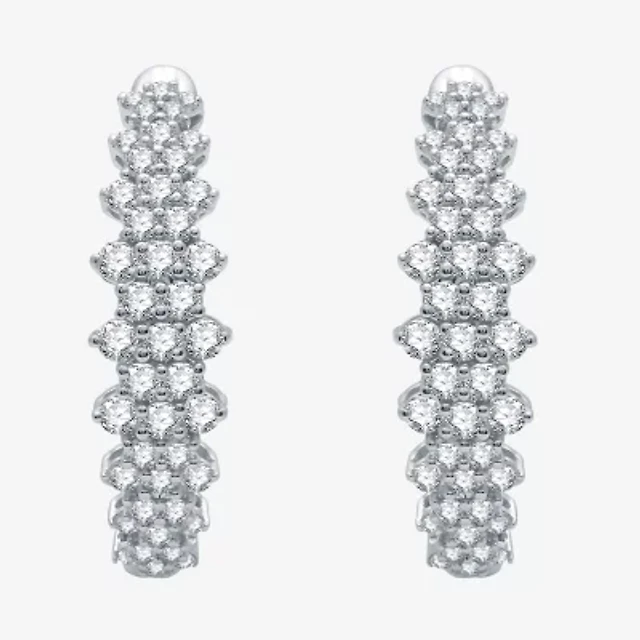 H-I / I1) Womens 1 CT. T.W. Lab Grown White Diamond 10K White Gold 21.9mm Hoop Earrings