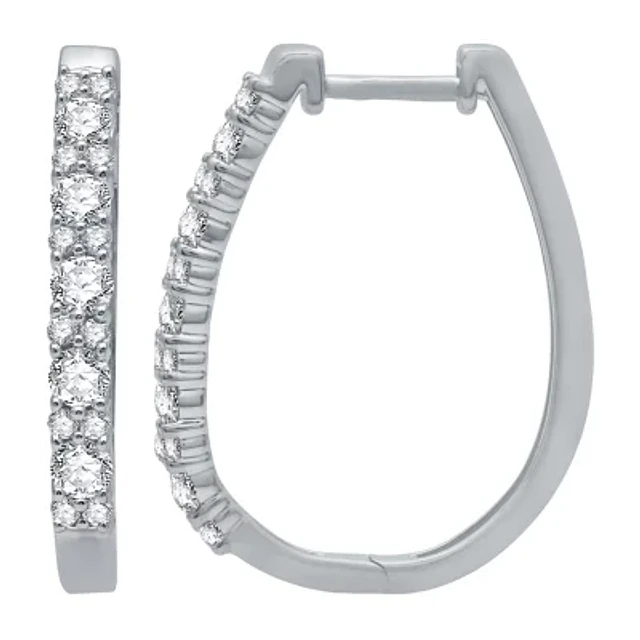 (H-I / I1) Womens 1 CT. T.W. Lab Grown White Diamond 10K White Gold 21.9mm Hoop Earrings