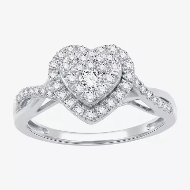 (H-I / I1) Womens 1/2 CT. T.W. Lab Grown White Diamond Sterling Silver Heart Side Stone Crossover Engagement Ring