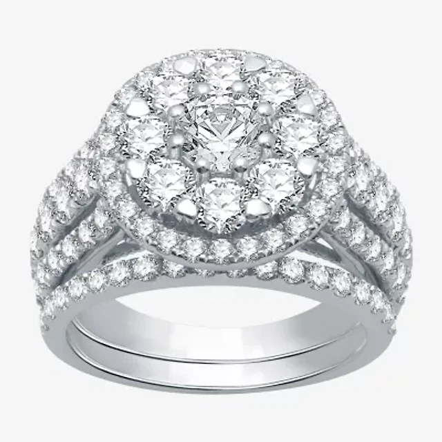 Love Lives Forever (H-I / I1) Womens 2 CT. T.W. Lab Grown White Diamond 10K Gold 3-Stone Halo Engagement Ring