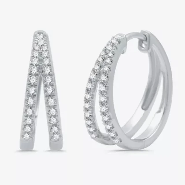 (H-I / I1) Womens 3/8 CT. T.W. Lab Grown White Diamond Sterling Silver 17mm Hoop Earrings
