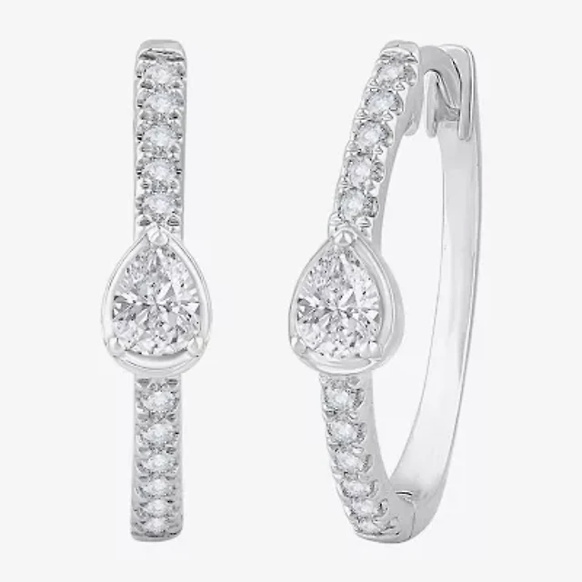 H-I / Si1) Womens 1/2 CT. T.W. Lab Grown White Diamond 14K White Gold 18.5mm Hoop Earrings