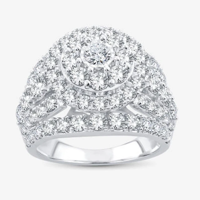 (H-I / Si1) Womens 4 CT. T.W. Lab Grown White Diamond 10K Gold Round Side Stone Halo Engagement Ring