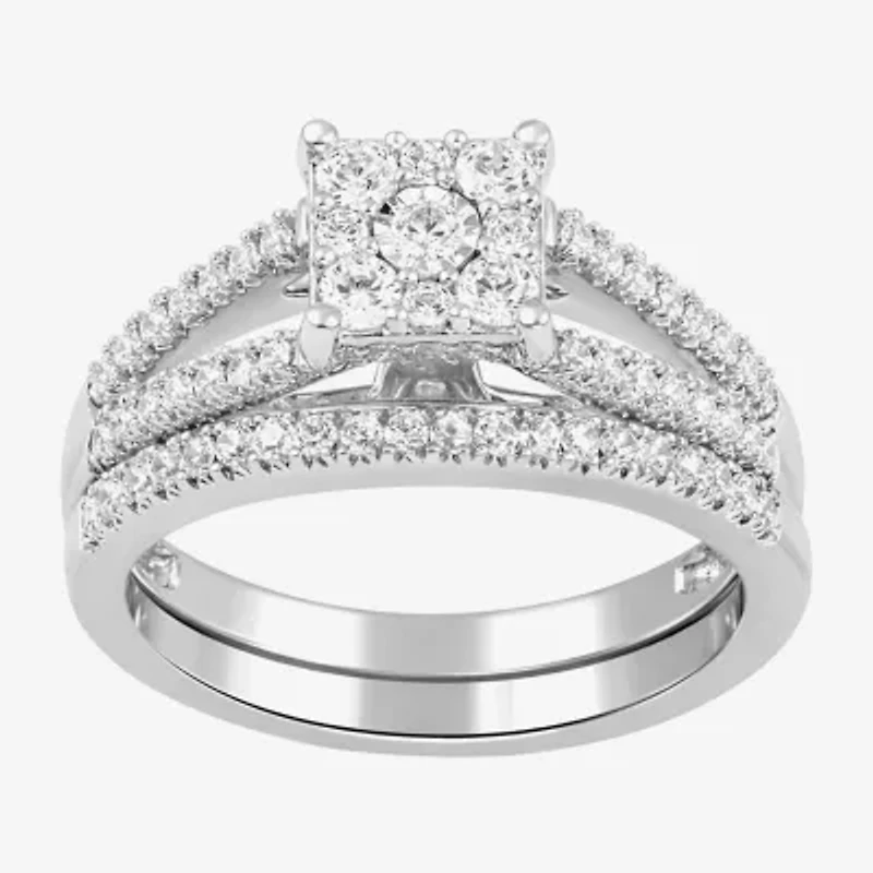 H, I1-I2 Womens 5/8 CT. T.W. Lab Grown White Diamond Sterling Silver Side Stone Halo Bridal Set