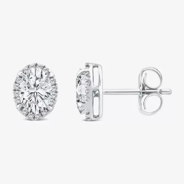 (H / Si2) 1 1/2 CT. T.W. Lab Grown White Diamond 10K Gold 8.6mm Oval Stud Earrings
