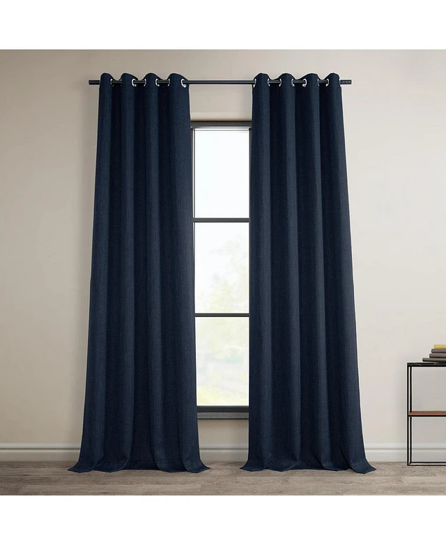 Half Price Drapes Nightfall Navy Grommet Textured Faux Linen Room Darkening Curtain