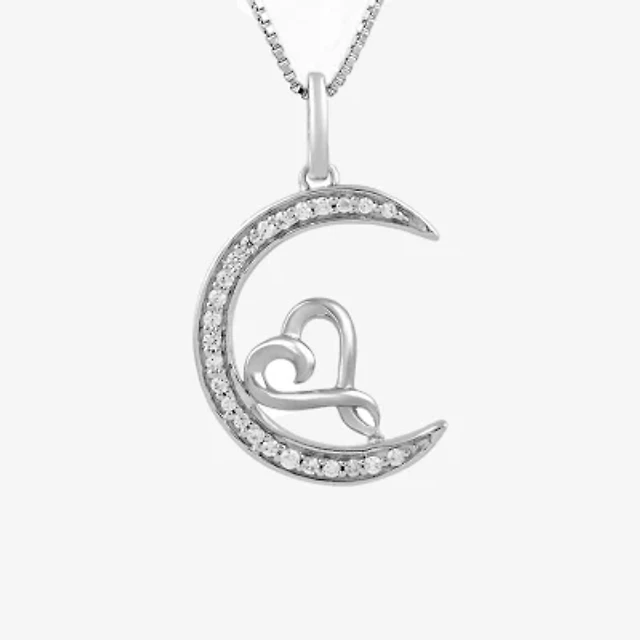 Hallmark Diamonds Womens 1/10 CT. T.W. Natural White Diamond Sterling Silver Heart Moon 18 Inch Pendant Necklace