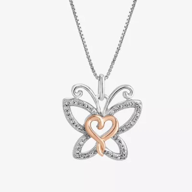 Hallmark Diamonds Womens Diamond Accent Natural White Diamond 14K Two Tone Gold Over Silver Butterfly Heart 18 Inch Pendant Necklace