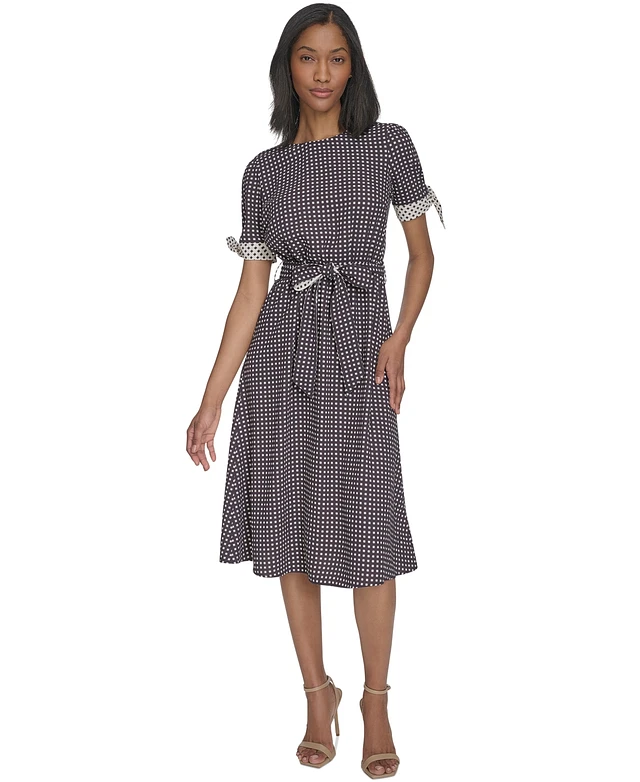 Halston Women's Belted Fit & Flare Tie-Waist Midi Dress