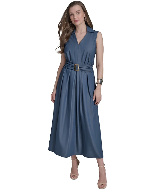 Msk Women's Belted Tiered Sleeveless Maxi Dress