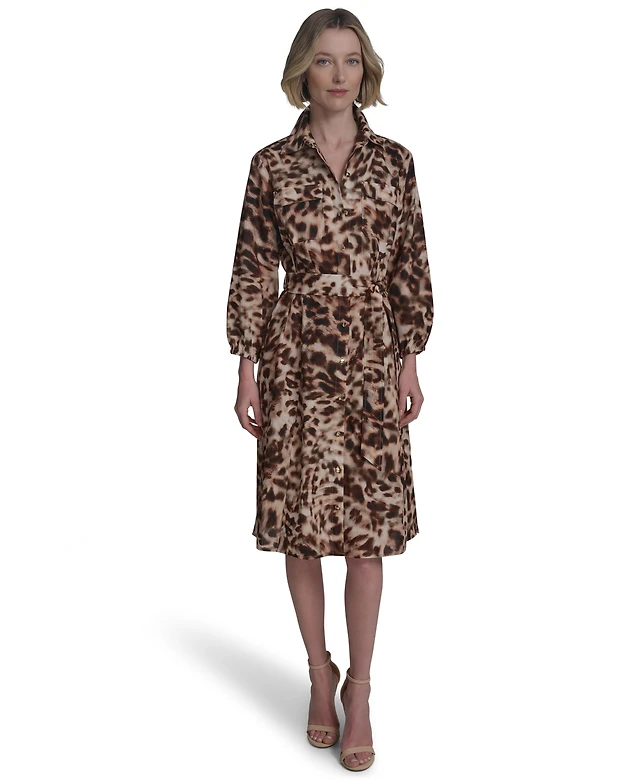 Anne Klein Women's Printed Tie-Waist Long-Sleeve Shirtdress