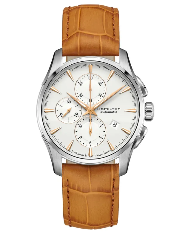 Hamilton Men's Swiss Automatic Chronograph Jazzmaster Brown Leather Strap Watch 42mm