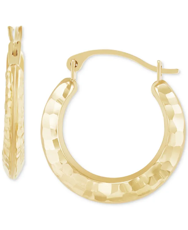 Cubic Zirconia Hammered Small Hoop Earrings in 14k Gold-Plated Sterling Silver, 0.55"