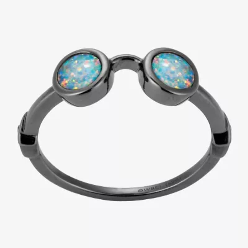 This Harry Potter™ ring resembles the distinctive shape of Harry's iconic glasses. Opal playfully adds a glimmer to the black rhodium plated frames. A cute and recognizable accessory for your wizarding wardrobe.