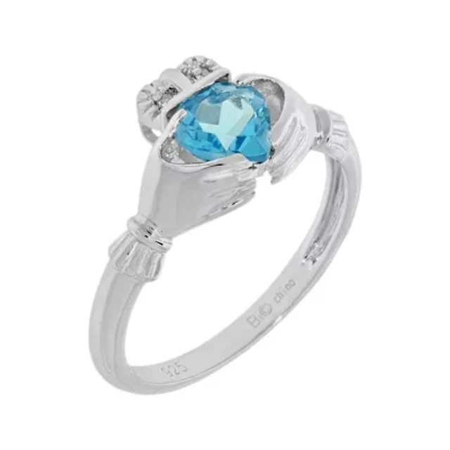 Heart-Shaped Genuine Blue Topaz and Diamond-Accent Sterling Silver Claddagh Ring