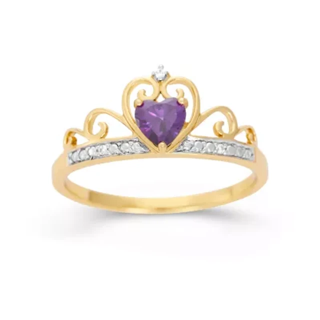 Heart-Shaped Simulated Amethyst & Cubic Zirconia 18K Gold Over Silver Ring