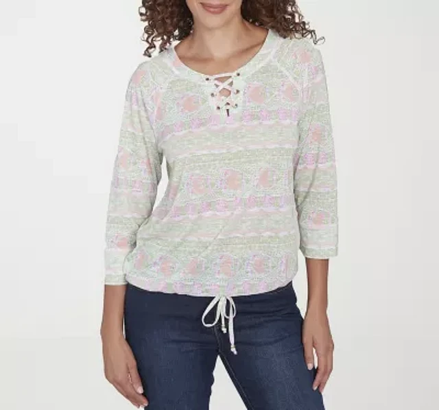 Hearts Of Palm Womens Keyhole Neck 3/4 Sleeve T-Shirt