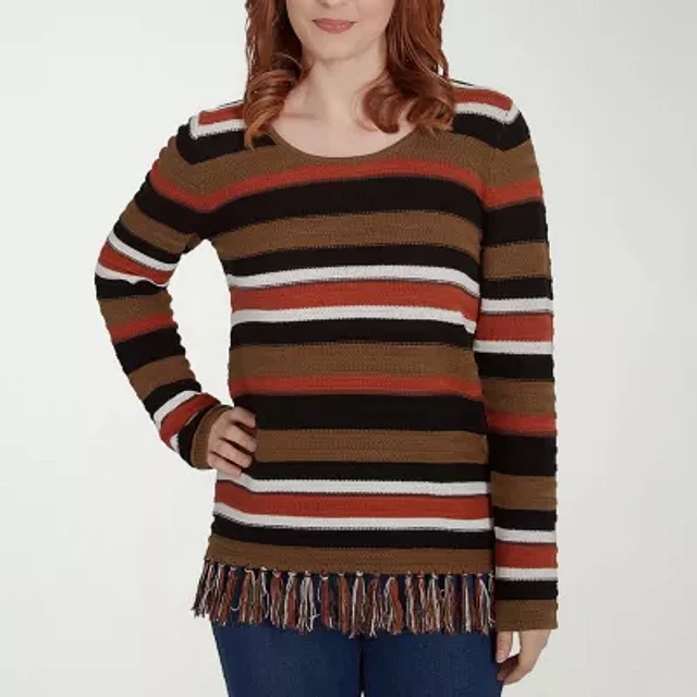 Hearts Of Palm Plus Womens Long Sleeve Striped Pullover Sweater
