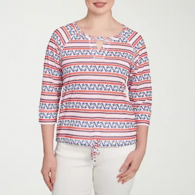 Hearts Of Palm Womens Keyhole Neck 3/4 Sleeve T-Shirt