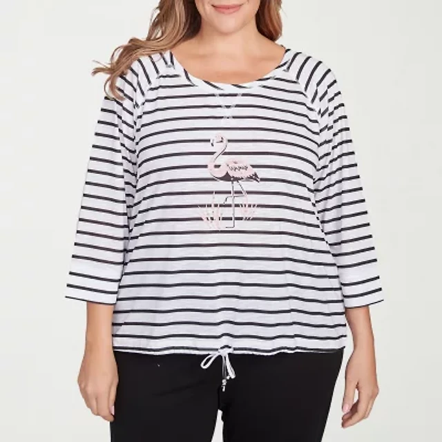 Hearts Of Palm Womens Plus Crew Neck 3/4 Sleeve Regular Fit Graphic T-Shirt