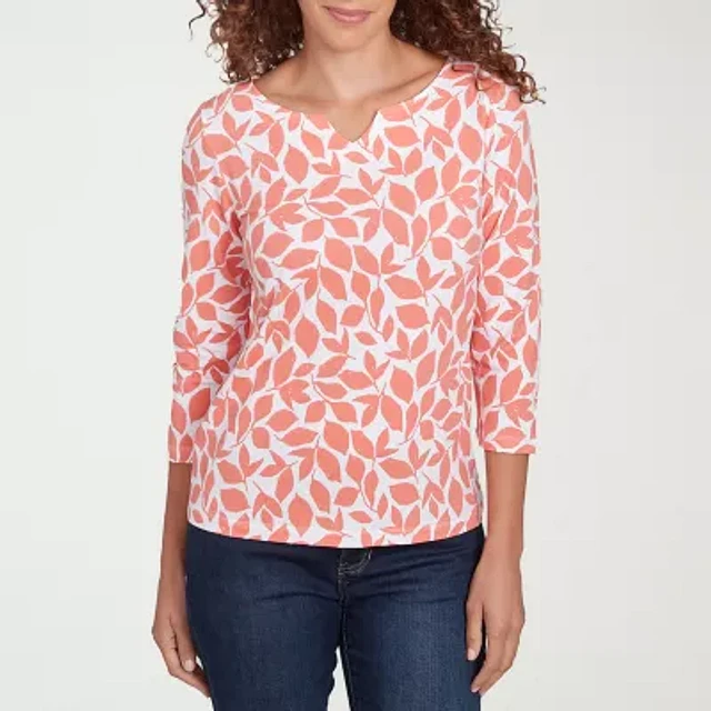 Hearts Of Palm Womens Split Crew Neck 3/4 Sleeve T-Shirt