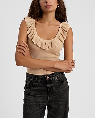 Sheer V-Neck Ruffle Sweater Tank