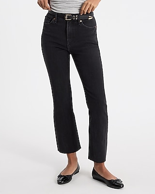 High Waisted Black Wash Raw Hem FlexX Cropped Flare Jeans