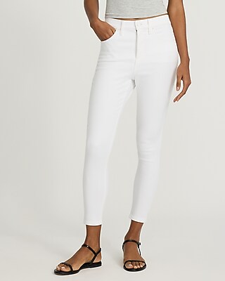 High Waisted White Cropped Skinny Jeans