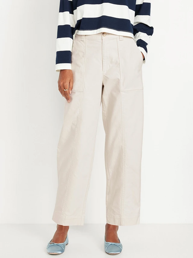 High-Waisted Faux-Leather Ankle Barrel Pants