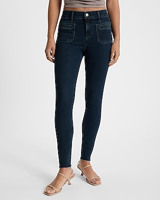 Mid Rise Dark Wash Patch Pocket Hyper Sculpt Skinny Jeans