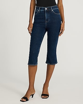 High Waisted Dark Wash Hyper Sculpt Capri Jeans