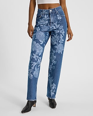 High Waisted Dark Wash Cuffed Hem Relaxed Straight Jeans