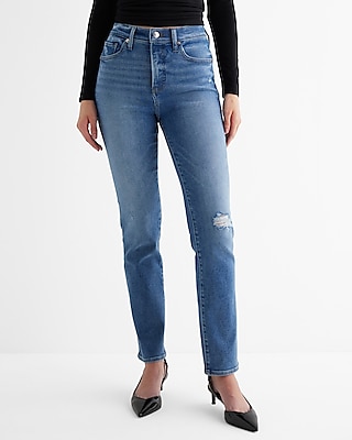 High Waisted Medium Wash Ripped '90s Slim Jeans