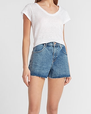 High Waisted Raw Hem Jean Shorts