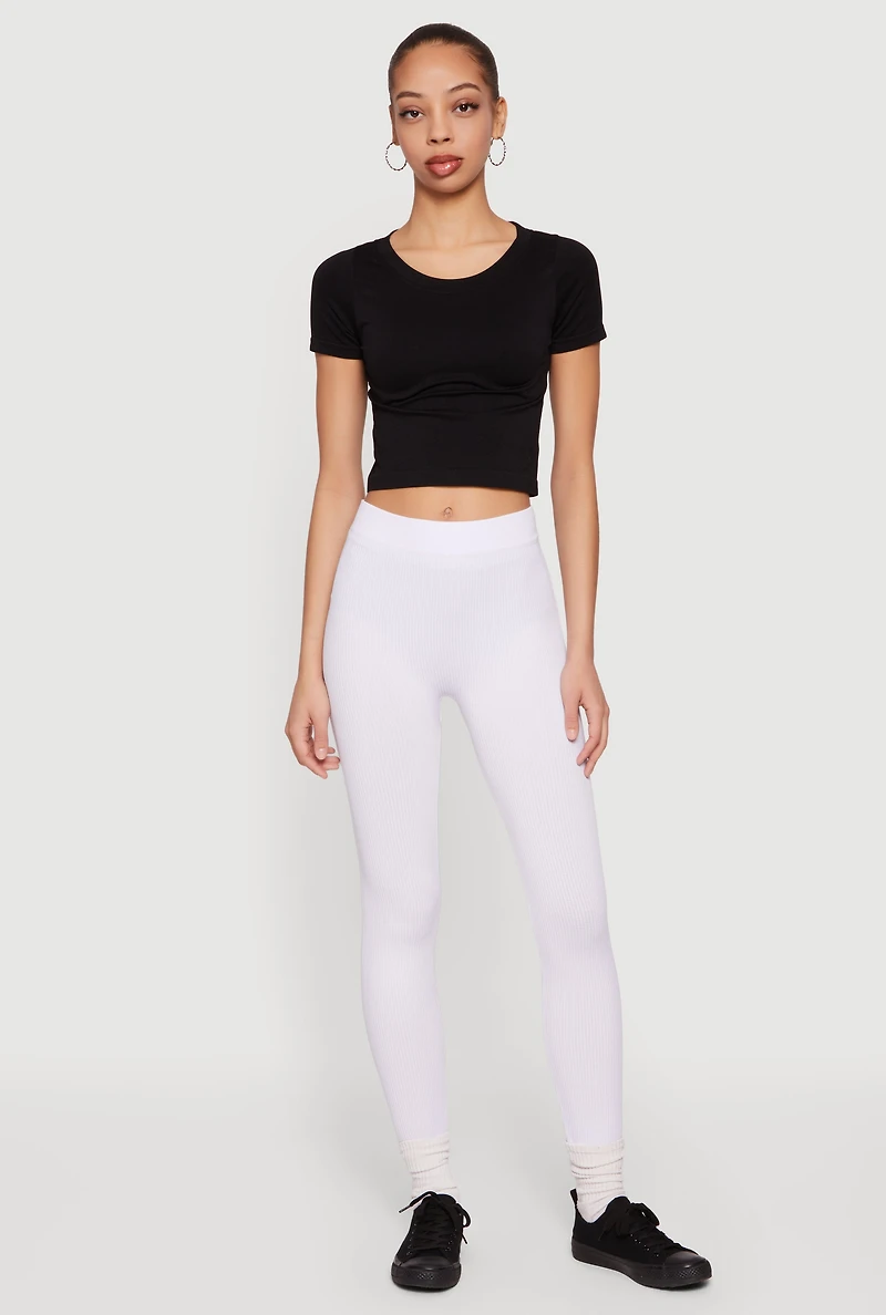 High Waisted Ribbed Knit Cropped Leggings