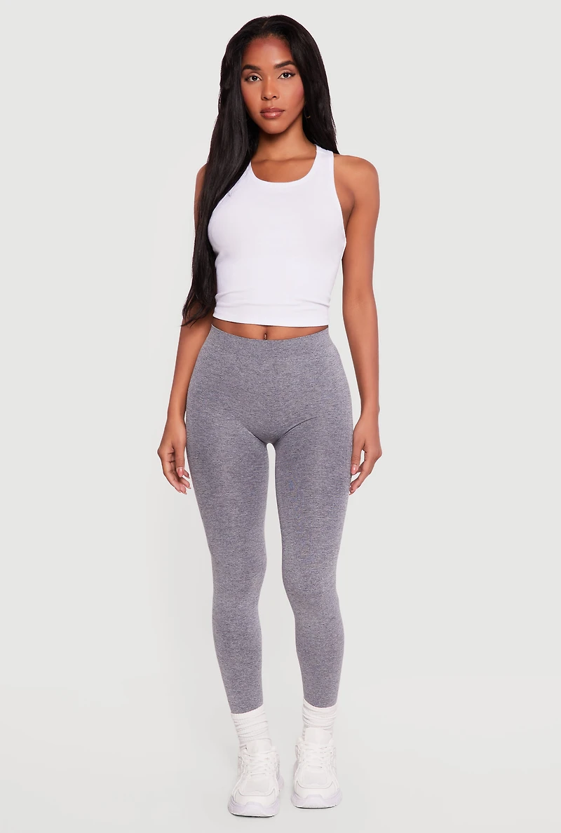 These high-waisted leggings offer a sleek, skinny-leg silhouette that hits at the ankle, perfect for casual and activewear looks. Designed with seamless stretch fabric, they provide a smooth fit that moves with you. Their versatile style suits athleisure and everyday wear effortlessly. High-rise waist enhances shape and support Seamless construction for a smooth, no-bulk feel Skinny ankle-length cut for a modern look Stretchy fabric adapts to your movements Model Pictured Wearing Size S Height 5 ft 8 in, Bust 32 in, Waist 25 in, Hips 36 in Fits True To Size Measurements Inseam: 30 in Content and Care Material: 96% Nylon, 4% Spandex Care Instructions: Machine Wash, Tumble Dry Country Of Origin: China Rainbow Item Number 5069035160228 HEATHER - 5069035160228004