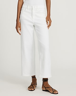 High Waisted White Raw Hem Wide Leg Ankle Jeans