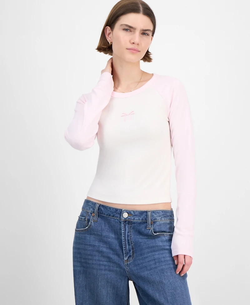 Hippie Rose Juniors' Crewneck Raglan Long-Sleeve T-Shirt