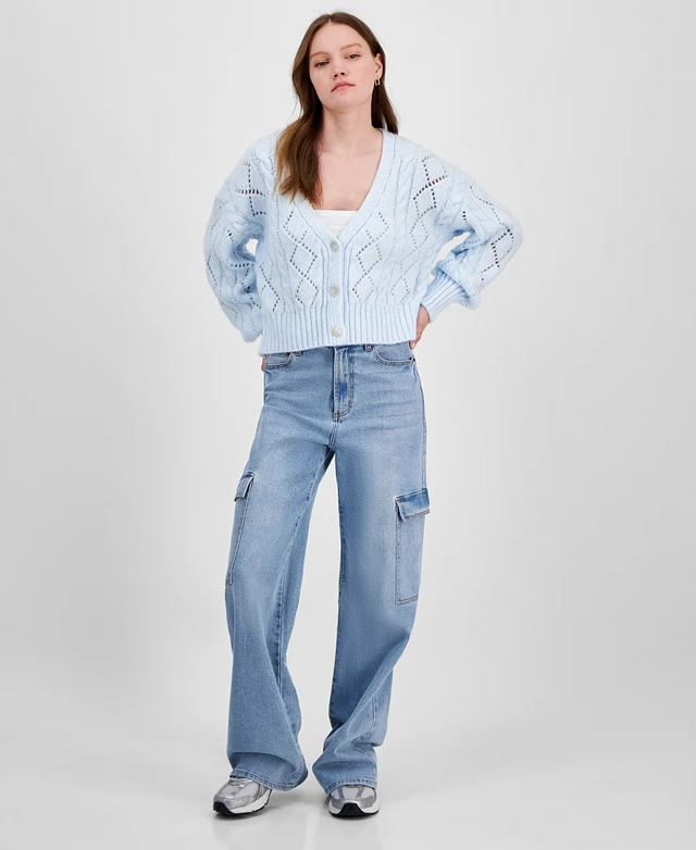 Hippie Rose Juniors' Pointelle Cable-Knit Cardigan