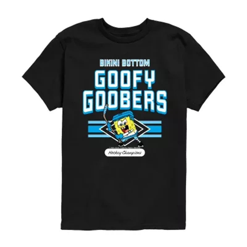Hockey Champions Goofy Goobers Little & Big Kid Boys Crew Neck Short Sleeve Regular Fit Spongebob Graphic T-Shirt