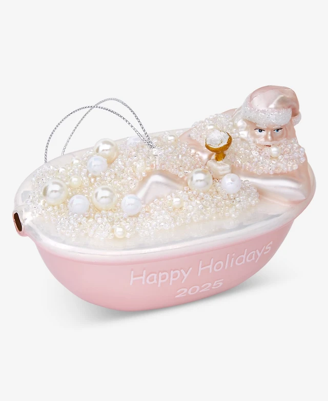 Holiday Lane Pastel Shine Pink Bathtub Santa Ornament, Macy's Exclusive