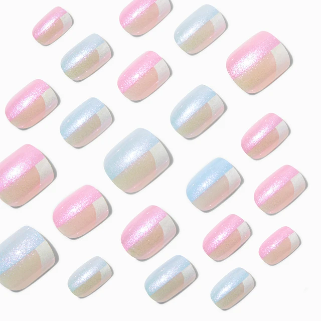 Holographic Colorblock Square Vegan Faux Nail Set - 24 Pack