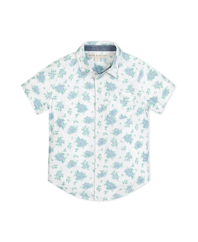 Hope & Henry Boys Linen Short Sleeve Button Down Shirt
