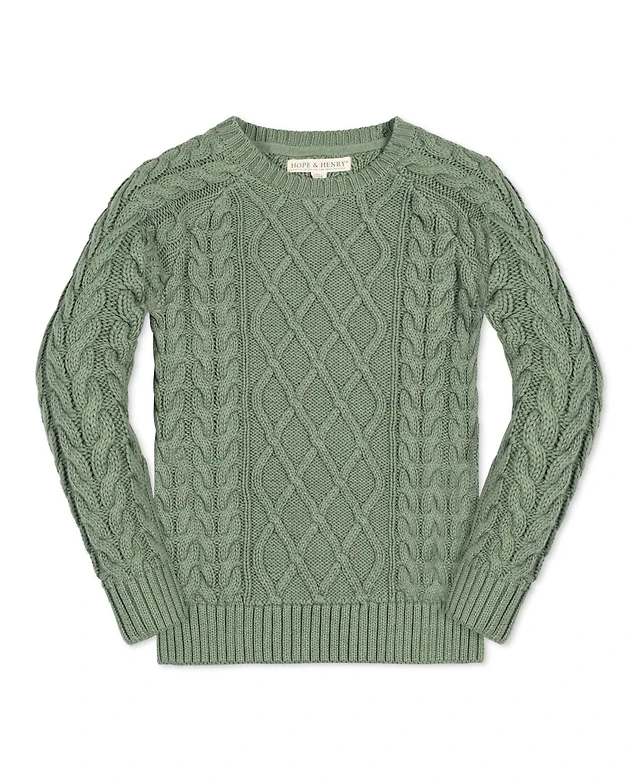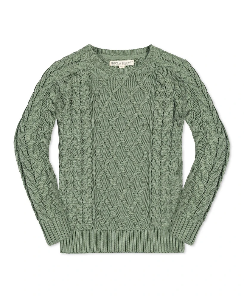 Hope & Henry Boys Organic Long Sleeve Raglan Fisherman Cable Sweater