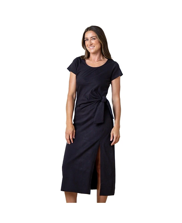 Hope & Henry Women's Organic Short Sleeve Knit Tie Midi Dress