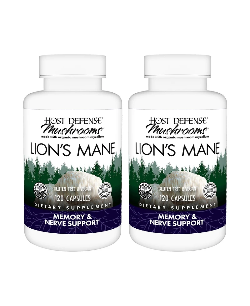 Explore the numerous health benefits of mushrooms with Host Defense Lion's Mane. Powered by mushroom mycelium, each capsule supports focus, memory, and cognition. Our Lion's Mane mushroom supplement supports brain health and function, nervous system function, and immune system health. Lion's Mane, known as The Smart Mushroom, has been revered for centuries, and now you can experience the support it offers for clarity and a positive attitude. For memory and nerve support, take two capsules once daily, with food or on an empty stomach, or as recommended by your healthcare advisor. Fungi Perfecti, makers of Host Defense Mushrooms, is a family owned company founded in 1980 by renowned mycologist Paul Stamets with the goal of building the connection between health and beneficial fungi. Our mycelium-based mushroom products are non-gmo gluten-free.